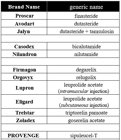 FOR MOST TREATMENTS & DRUGS USED IN BPH & PROSTATE CANCER PLEASE SEE THE CHART ABOVE.